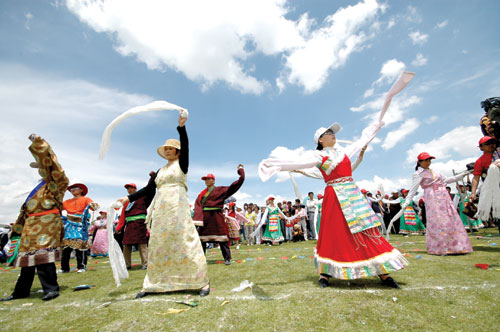 還有昆侖山道教文化、絲綢之路南線、樂(lè)都瞿曇寺等等如一顆顆珍珠串起青海輝煌的過(guò)往,讓人對(duì)青海產(chǎn)生悠遠(yuǎn)的假想。也因此,延續(xù)文化、傳承歷史,成為當(dāng)代青海人的責(zé)任和使命。近幾年來(lái),我省積極整合藝術(shù)資源,激發(fā)了院團(tuán)活力,推出了以大型民族歌舞《唐蕃古道》、《青溜溜的青!、“花兒”風(fēng)情歌舞《六月六》等一批民族地域特色濃郁的優(yōu)秀新創(chuàng)劇目,特別是總?cè)谫Y1700萬(wàn)元,由省政府組織策劃、北京成橋文化傳播公司承擔(dān)創(chuàng)排、省直兩院演出的兩臺(tái)精品劇目《大型音畫(huà)歌舞——秘境青!、《青;▋阂魳(lè)詩(shī)劇——雪白的鴿子》創(chuàng)作完成,于今年2、4月份在北京保利劇院正式上演,這兩臺(tái)劇目是我省在藝術(shù)創(chuàng)作理念、藝術(shù)生產(chǎn)方式上的一個(gè)重大突破。同時(shí),全力推進(jìn)公共文化服務(wù)體系建設(shè),保障人民群眾的基本文化權(quán)益;找準(zhǔn)定位,選擇突破口,大力發(fā)展特色文化產(chǎn)業(yè);拓寬范圍,全面加強(qiáng)文化遺產(chǎn)保護(hù)工作;更新觀念,加大各類(lèi)文化人才培養(yǎng)。青海還適時(shí)提出“文化青!苯ㄔO(shè)這一命題,確立“文化青海”的發(fā)展目標(biāo),這將有利于樹(shù)立自信、開(kāi)放、創(chuàng)新的青海意識(shí),有利于促進(jìn)科學(xué)發(fā)展、改善文化民生,有利于促進(jìn)民族團(tuán)結(jié)、維護(hù)社會(huì)穩(wěn)定,有利于促進(jìn)生態(tài)文明、提升可持續(xù)發(fā)展水平,有利于促進(jìn)對(duì)外文化交流、塑造青海新形象。