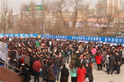 近年來(lái),我市每年新增高校畢業(yè)生1萬(wàn)余人,嚴(yán)峻的就業(yè)形勢(shì)讓大學(xué)生們壓力倍增。圖為我市一場(chǎng)招聘會(huì)現(xiàn)場(chǎng)。