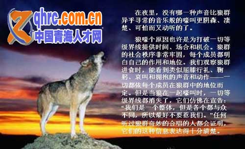 正如英國(guó)動(dòng)物學(xué)家紹。艾利斯所說(shuō):“在所有哺乳動(dòng)物中,最有情感者,莫過(guò)于狼;最具韌性者,莫過(guò)于狼;最有成就者,還是莫過(guò)于狼。” 在狼的身上,我們發(fā)現(xiàn)了人類(lèi)所需要的一切。
